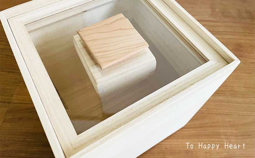でも、桐という自然な素材で作られていることと、フタがマグネットでくっ付くというユニークなデザインが素敵で選びました。